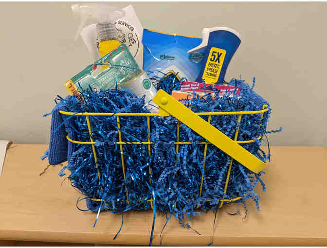 Basket includes The Pink stuff spray & paste, Scrub Mommy, Dawn spray, plug-in & 2 towels. Also included is coupon for 25% off cleaning.
