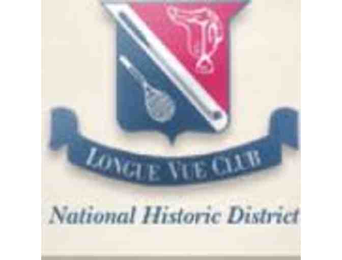An 18-hole round of golf for four with carts, and lunch for four inside or outside of the Janssen Room up to $100. Alcoholic beverages by cash. Foursome not allowed to be split in two. Golf appropriate attire required. Tee times available Tuesday-Thursday; no holidays. Certificate expires October 31, 2023. Visit: https://longuevue.org/