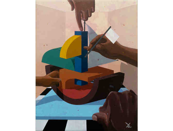 I finished this painting right around the time the Nigerian presidential election was held. I think the election occupied my subconscious mind without me realizing it. Election period is often stressful, even dangerous, for a lot of people. This year was no different but there was something else. Though the outcome and results were different than I had hoped, and the infrastructure had failed us yet again, it was satisfying seeing millions of young Nigerians exercise their democratic responsibility to vote. I felt a renewed sense of hope. In the painting, many hands come together to build a ship, a vessel that takes us from where we are, to where we need to be. I believe that to build a desired and much needed future; everyone needs to be involved in the process. Everyone has a role to play, a responsibility. All hands on deck.