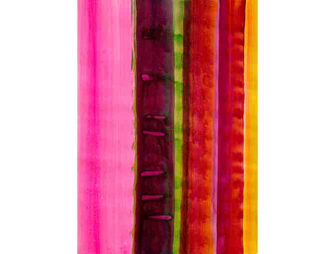 A painting of liquid flowing lines of sudden illumination. Striations of colour of energy of light. A picture of a joyful architecture of vertical rivers of colour. A study of great delight and glee.