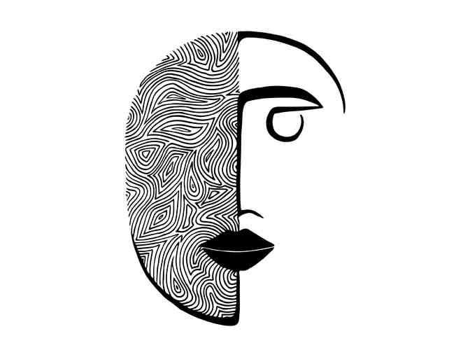 L’œuvre, inspirée des masques et des contes traditionnels d’Afrique, représente l’« (HIS)tory », mais aussi son histoire à elle, « (HER)story » (aussi en vente). Des lignes précises et le vide laissé blanc; l’approche minimaliste de cette œuvre n’en diminue pas le message, au contraire.