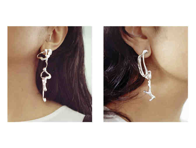 The Doyenne Earrings are an organic journey in form and movement. Sculpted in hot wax and honoured in Sterling Silver using the lost wax casting method. These earrings are an ode to esteemed women traversing the depths of their field. Sold as an asymmetrical pair; The Doyenne earrings are perfect worn together as the ultimate sculptural statement pair or mix and matched with a complimentary piece from your own collection.
