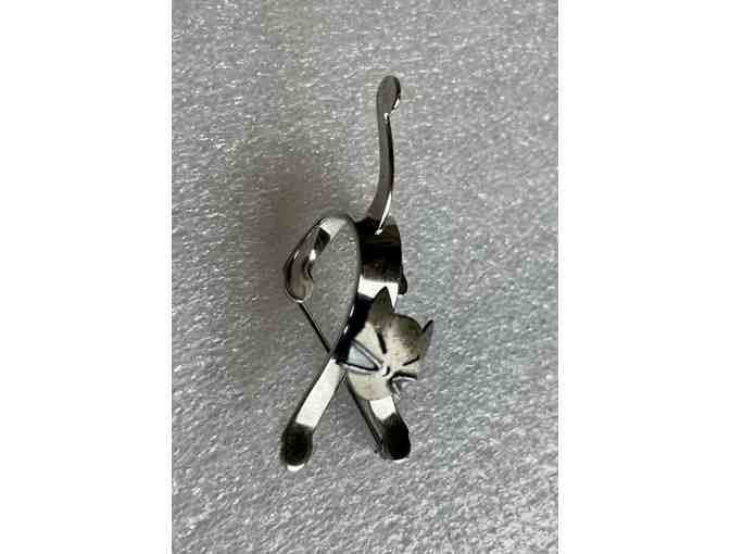 Beautiful classic (marked) Beaucraft sterling silver cat pin with moveable head. ÂBeaucraft was one of the leading producers of beautiful and unique fine sterling silver jewelry ever made for over half a century. The designs had originality, versatility, and impeccable craftsmanship. Vintage Beau silver and other jewelry pieces are now considered highly collectible and in the same class of jewelry as Coro. Their latest designs took on a new approach by contrasting brushed and high polished sterling silver finishes, creating a completely original look that combines classic style with modern fashion.Â