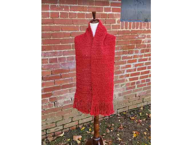This handmade large scarf may be worn as a shawl as well. Perfect to wear year round with any outfit! Crafted with acrylic-non-allergic yarn.