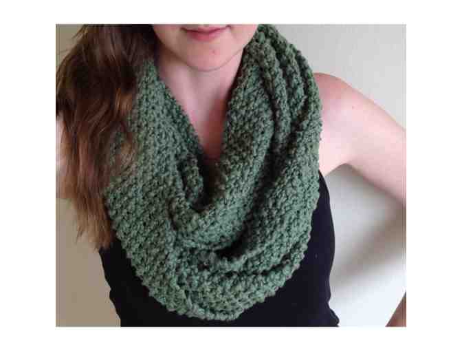 Do you love being warm and cozy AND fashionable? Then bid on this one-of-a-kind hand-crocheted infinity scarf made by yarn witch Hannah Moloney! Perfect for warding off that slight spring morning chill. Winner to determine color from a variety available.