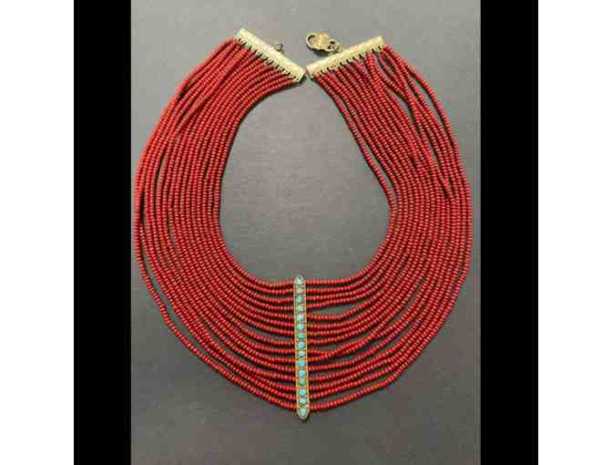 (See "In memory of" in "Of Special Note" below. Also please see Note on condition at bottom of this listing). "Discoveries Unlimited" designed and constructed coveted necklaces in the 1970s+. They frequently sold to Saks Fifth Avenue NYC and got mention in the NY Times. The tiny beads on this necklace, I believe, are carnelian. The other stones appear to be turquoise. This simple vintage piece is great for casual or dress and looks wonderful on a solid dark/black or other color top. It fits (approximately) a 12.5-13" neck but more links can be added to the end (by the buyer). Due to the rounded shape, I cannot easily measure it end to end. NOTE: Since these pieces were strung in the '70s or '80s they may need to be restrung. Restringing will be up to the buyer. I have taken this into account with the pricing- as their pieces used to sell for significantly higher prices.