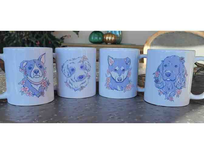 Coffee cups designed by Addisyn Barnes from Arts to the Rescue at Air Academy High School. Artistic muses are the beautiful dogs at the National Mill Dog Rescue: Berry, Figi, Sally, and Thelma.