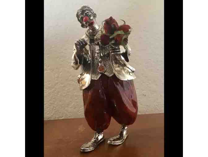 Rare Angini solid sterling silver Murano glass clown figurine with red flowers. Vintage 1990's