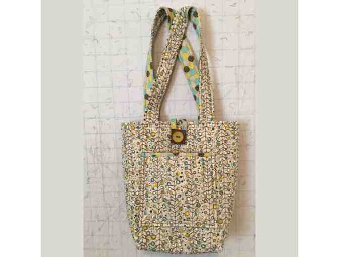 This new quilted purse/tote has lots of pockets inside and out. As Goldilocks once said, "It's not too big and not too small, it's just right."Approx. 15"x15" with 15" handles.