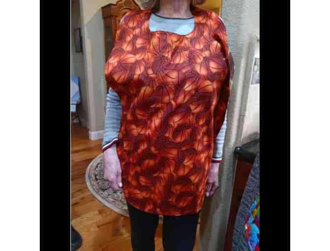 Slightly larger in the neck, this clothing protector was made for the sports fanatic. One size fits most. Machine wash cold, lightly dry or hang dry. Made of 100% cotton. I made this to protect our loved ones clothing from stains.