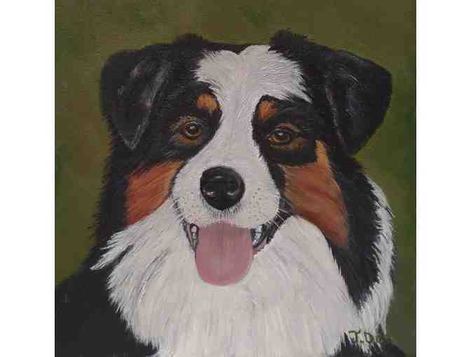 Beautiful original 8" x 8" oil painting on stretched canvas of an Australian Shepherd. Painted by a Colorado artist.