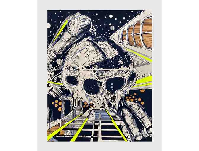 The painting donated was created in response to de Montigny's 2022 summer group-exhibition, Fractured Utopia, at Karsh-Masson Gallery with artwork by Claire Scherzinger, Colin Canary, and Tyler Armstrong. This particular artwork continues de Montigny's exploration human consciousness, technology, and the terror of outerspace.