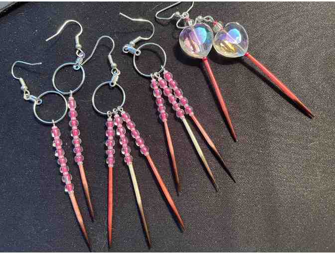 Dare to Wear (to Paint the Town Pink!), 2023, porcupine quill art/earrings in shadow box 8 in x 10 in