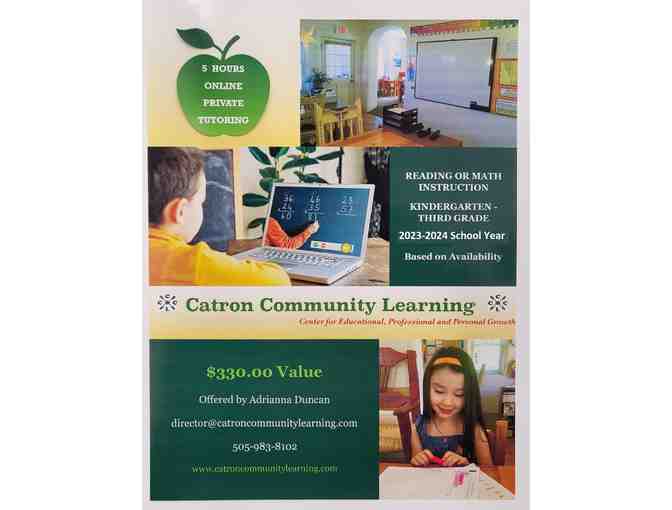 Catron Community Learning is proud to offer 5 hours of Online Private Tutoring in Reading or Math for Kindergarten to 3rd Grade level.