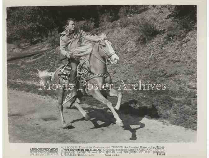 Springtime in the Sierras originally released in 1947 William Witney singing cowboy western musical starring Roy Rogers (“King of the Cowboys”), Trigger (“Smartest Horse in the Movies”), Andy Devine, Jane Frazee, Stephanie Bachelor, and Bob Nolan and the Sons of the Pioneers.