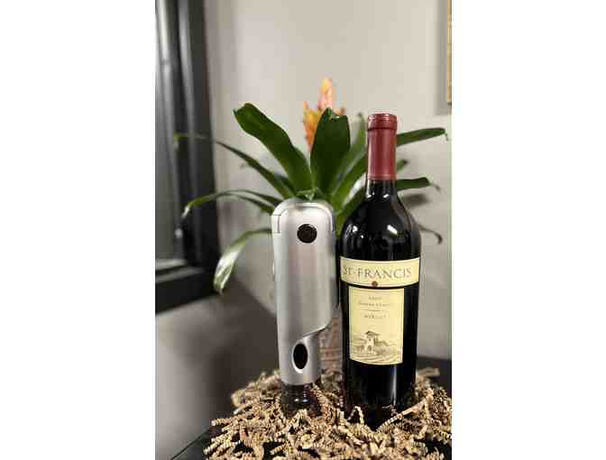 Gone are the days of using the old fasioned wine bottle opener! Open a bottle of wine in seconds with this handy battery powered opener! Bottle of wine also included!