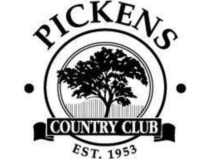 An 18-hole round of golf for four with carts at Pickens Country Club in Pickens, SC. Foursome not allowed to be split into two groups of two. Golf appropriate attire required. Certificate available Monday - Sunday. Call pro shop for tee time availability. Certificate expires one year from purchase date. Visit https://www.pickensgolfclub.com/