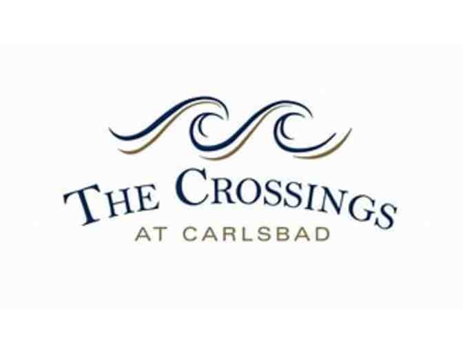 An 18-hole round of golf for four at The Crossings at Carlsbad in Carlsbad, CA. Foursome not allowed to be split in two. Golf appropriate attire required. Monday through Thursday only. No holidays. Please call and book 7 days in advanced. Expires April 24, 2024. Visit: https://thecrossingsatcarlsbad.com/
