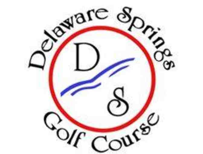 An 18-hole round of golf for four with carts at Delaware Springs Golf Course. Foursome allowed to be split in two. Golf appropriate attire required. TCertificate expires: March 6, 2024. Visit: https://delawaresprings.com/