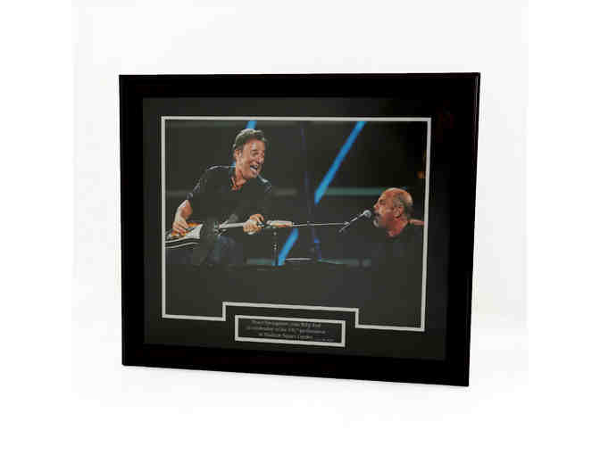 This beautifully framed photo features Bruce Springsteen and Billy Joel at Madison Square Garden on July 18, 2018. This was a celebration of Billy Joel's 100th performance at Madison Square Garden.
