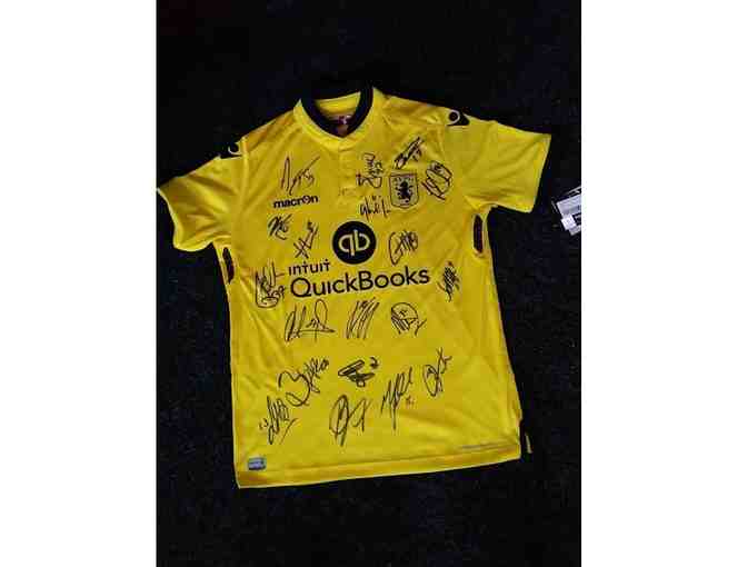 2018 Aston Villa Team Autographed Soccer Jersey. 19 signatures including Grealish Jedinak, Taylor Hogan, Steer Whelan, Chester Bjornason, Bree Onomah, Elphick Hourihane, Lansbury Snodgrass, Baker Adomah, Elmohamady Hutton, etc. Comes with certificate of authenticity.