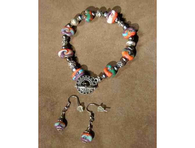 Reactive Colors Bracelet & Matching Earrings Artisan Jewelry Set