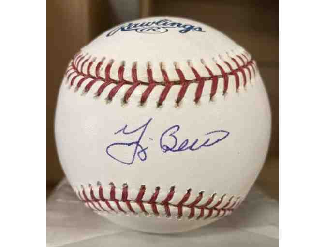 Yogi Berra Autographed Baseball. Comes with certificate of authenticity.