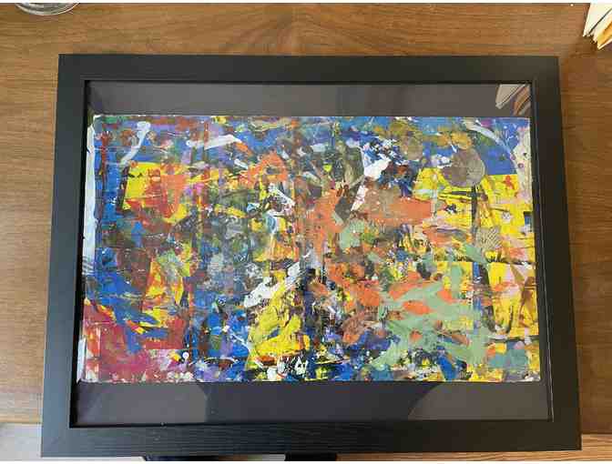 This artwork is a chosen piece of the "painting mat" from the art room where all our children go to learn and create the gorgeous masterpieces that we see hanging on our hallways every day. It is years and years in the making, collecting the splatters and brushstrokes of our children, and therefore no two selections are the same. This is truly a masterpiece - and a piece of Brown School history - that you will treasure for always.
