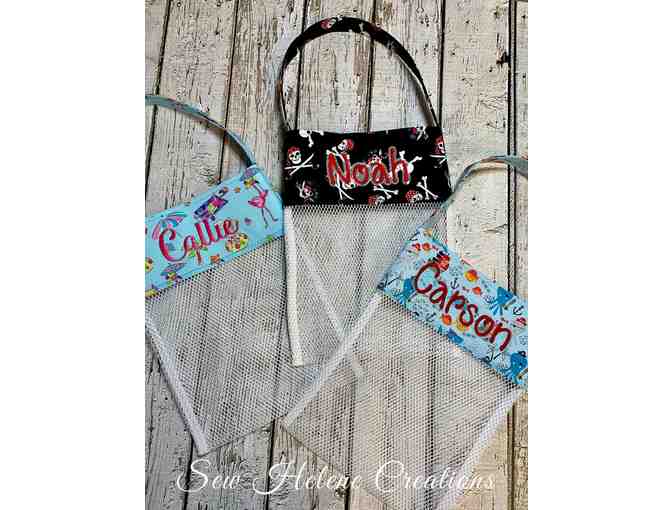 Made by the extremely talented, local artisan, Helene Curnutte. Bid on these fun treasures that will help your kids make memories that will last a lifetime!These adorable shell bags are sure to be a hit on your next beach outing. Perfect for collectors of all ages! (other fabrics available for the shell bag)