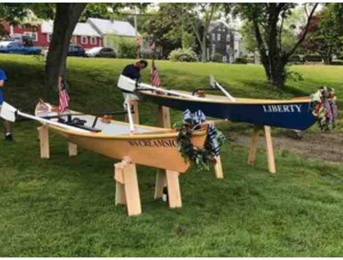 A private sculling session in an 18’ single rower (a modern version of a Pete Culler rowing bateau).