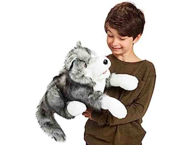 - Easily animate the antics of this engaging Timber Wolf plush hand puppet.