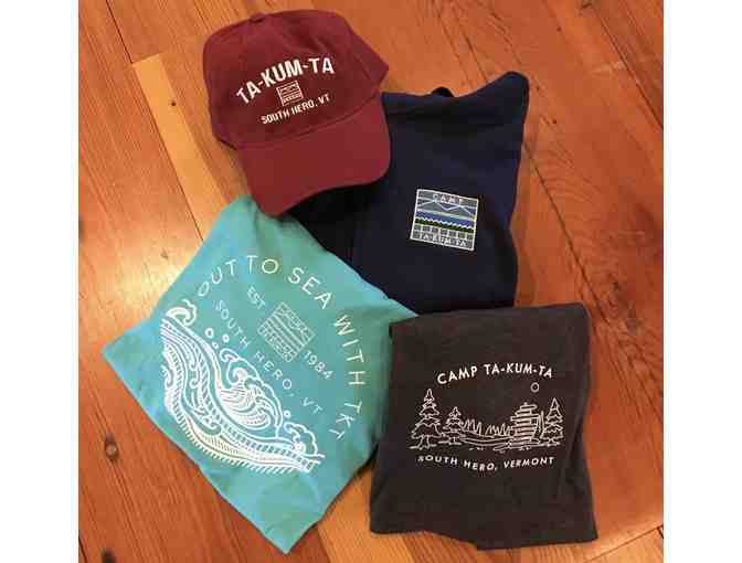 A package of exclusive Camp Ta-Kum-Ta Gear from Summer Week 2023! Includes a sweatshirt, hat, and two t-shirts.