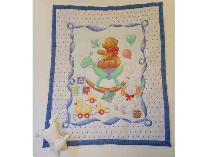 This charming handmade quilt measures 36" x 45". A cuddly Lil' Lamb Bean Bag is included for extra snuggles!
