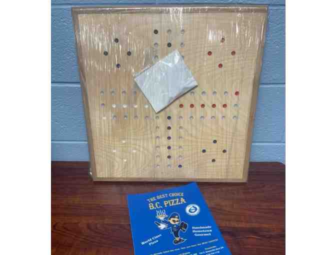 Wahoo Board with 1 Large 1- topping, 1 large gourmet, and coupon book.