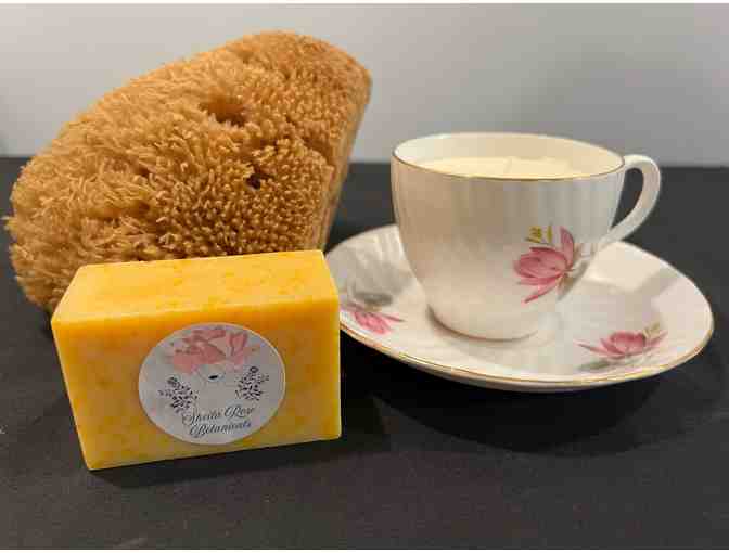- Sheila Rose Botanicals White Rose Soy Candle in bone china tea cup with saucer