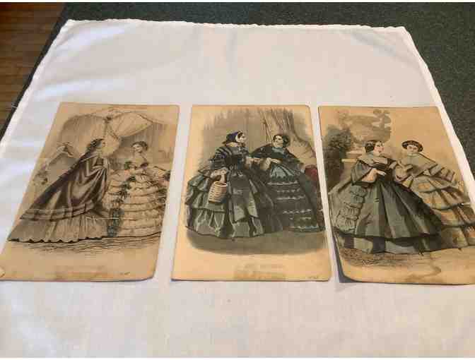3 Les Modes Parisienne Prints from 1858, 1 JFK with Roger Maris, 2 Old Advertising Prints.
