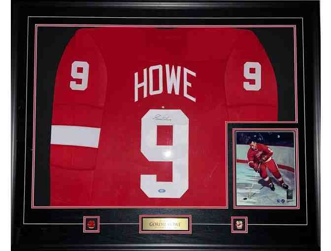 This is your chance to own a priceless piece of hockey memorabilia! This framed Detroit Red Wings jersey is autographed by Mr. Hockey himself, and authenticated/witnessed by Lojo Sports Marketing Inc.