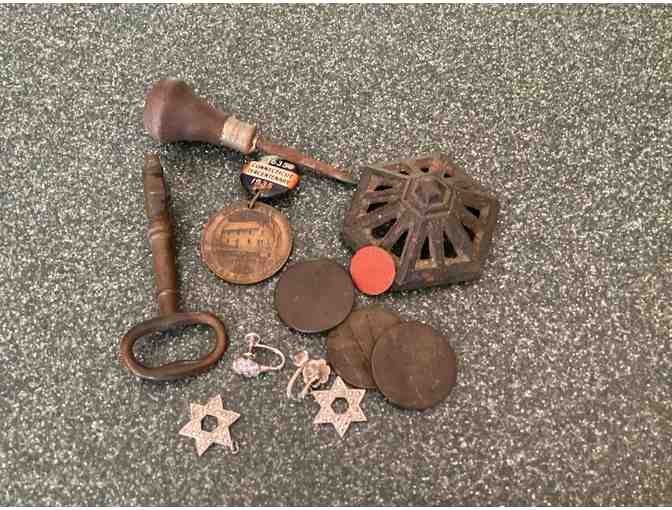 VERY OLD STUFF, Key, Coins, (Very Poor Condition) Earrings, one needs to be fixed, 1935 Medal, etc.