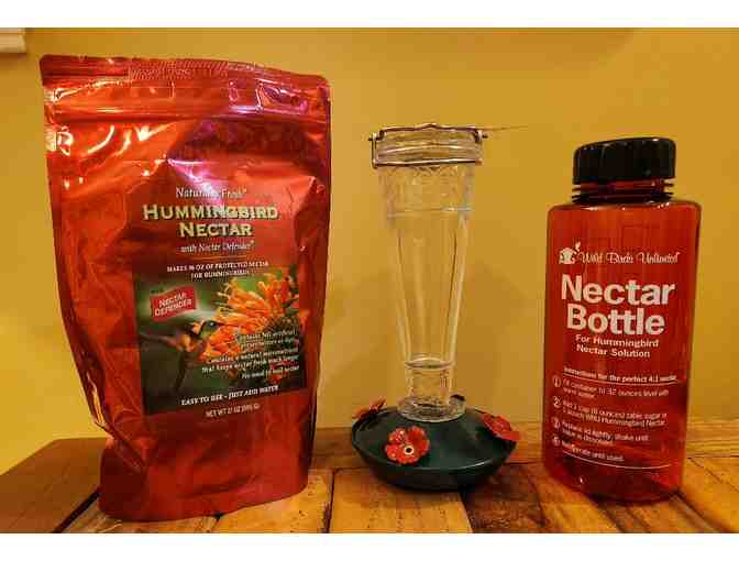 - 21 oz of Naturally Fresh Hummingbird Nectar which contains no artificial preservatives or dyes. The Nectar contains a natural micronutrient that keeps the nectar fresh much longer than other nectars and which is contained in hummingbirds' natural diet.