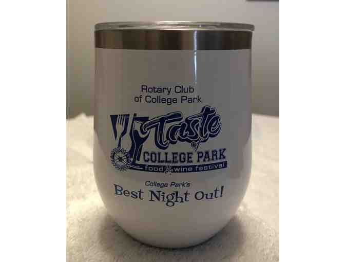 Two (2) Corkcicle 12 oz. Stemless Wine Cup with Taste of College Park logo.
