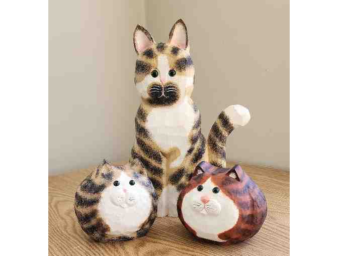 These three cats were hand carved from Wood Folk Art Cat collection. The two small pieces are signed.
