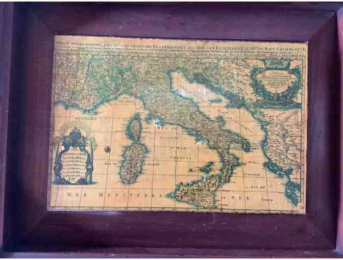 Map of Italy appears to be shellac on wood.