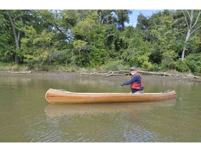 Good friend to the trail Grant Faller has crafted and donated this beautiful cedar strip canoe. Grant has provided the following specs: