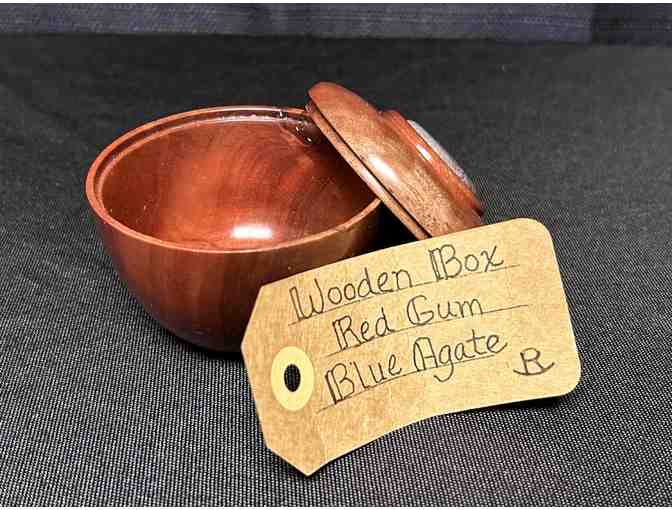 Are you always losing your rings or necklaces? This hand-carved red gum wooden trinket bowl with blue agate lid is the perfect place to put your special possessions.