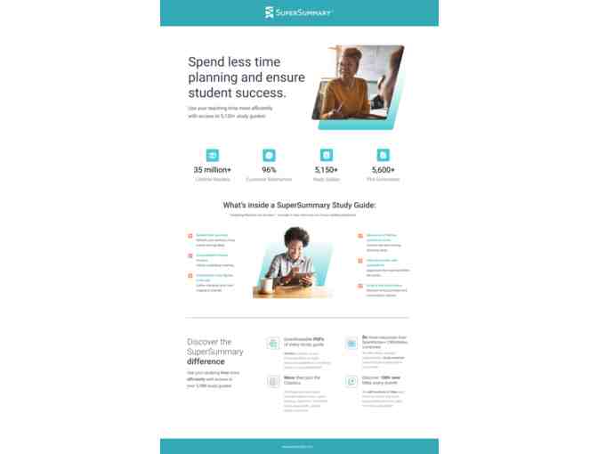 A subscription for SuperSummary Learning Resources, the perfect gift for your favorite student or teacher. (98% of teachers said using a study guide saved them at least 1-2 hours of prep time.) SuperSummary offers literary analysis, supplementary study materials, author and genre resources & much more!