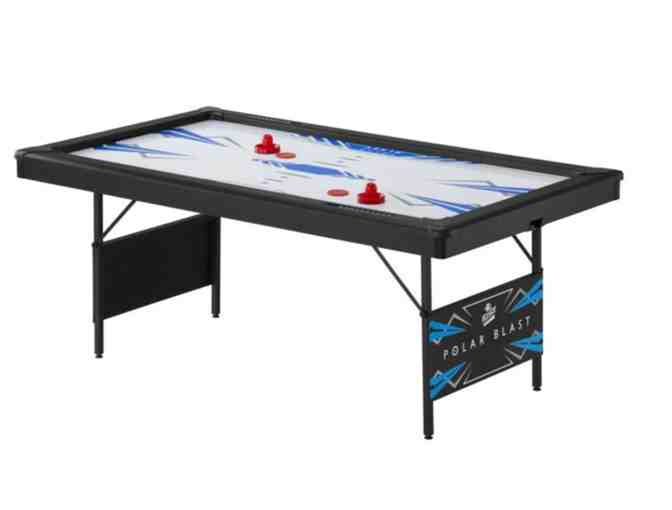 For those that are tight on space and want to enjoy their favourite classic table game, the Polar Blast 6ft Folding Air Hockey Table is the perfect solution! High strength material means not sacrificing quality for space, as the surface of the Polar Blast will be sure to play smooth and fast. Featuring a sleek modern playfield, this air hockey table will complement any decor. Easy setup and the included Play Package mean you and your friends can get started playing right out of the box in no time.