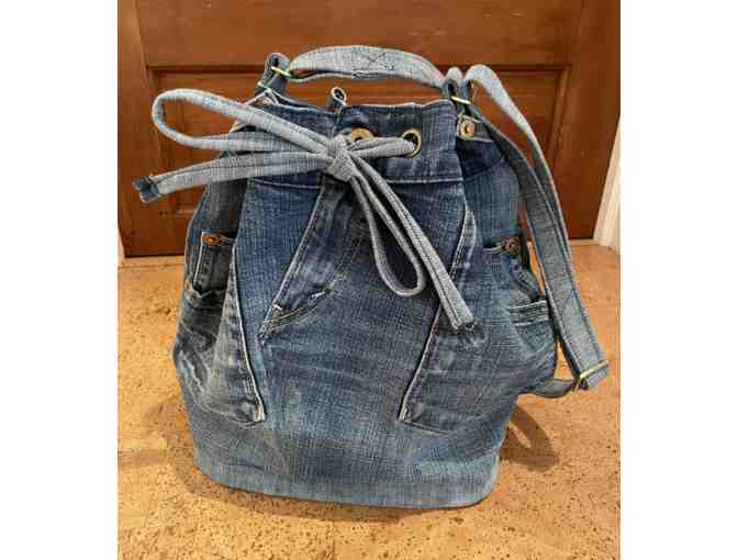 Enjoy a one-of-a-kind custom bucket bag out of your favorite pair of old jeans.