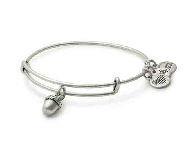 This expandable 2" to 3.5" nickel-free wire bangle features an acorn charm on a silver band.