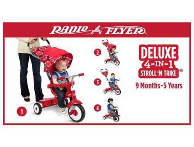 Radio Flyer 4-in-1 Deluxe Steer N Stroll Trike offers four ways to ride, which accommodates ages 9 months to 5 years of age