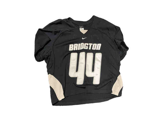 Game-worn, black Bridgton #44 lacrosse jersey.